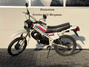 Zeer nette Honda MBX50 Rothmans. De MBX is in zeer mooie originele staat en heeft slechts 7000 km. Er zit een heel klein deukje in de tank. Het kuipje is opnieuw gespoten.