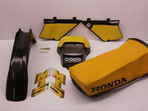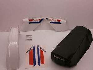 Compleet incl. bijbehorende tankstickers, rode kap stickers, rode sticker op koplampspoiler, rode zadelhoes en alle bijbehorende decal stickers.