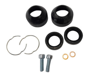 Nieuwe wiellagers, op maat gemaakte poten binnen en buiten, as, remklauw, rempomp en remleiding.