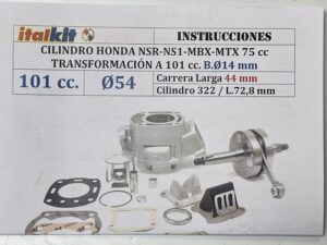 Italkit 100CC 54MM aluminium cilinder met Nikasil wand, 1 ringzuiger. 14mm