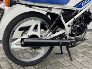 Hierbij bieden wij aan, deze originele Honda MB50S. Het betreft hier een bijzonder net exemplaar uit Belgiƫ. De Belgische exemplaren zijn geleverd zonder blok beugel en dit model is origineel in deze kleurstelling met de witte Comstar velgen geleverd.