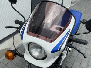Frame en tank zijn al wel eens gespoten. Het voor en achterspatbord, alsmede de Kuip zijn origineel en niet overgespoten.