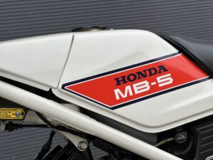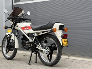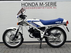 Hierbij bieden wij aan deze super mooie, originele, niet gerestaureerde Honda MB50P. Het betreft hier een NL bromfiets met het trapstel / de pedalen, zoals dit verplicht was in Nederland t/m 1984. De MB heeft origineel slechts 16472 km en verkeerd in uitmuntende staat. naar originele velgen. Het framenummer 5023621 en het bloknummer 5023720 komen heel dicht bij elkaar. Wij hebben de MB volledig in orde gemaakt, helemaal gepoetst, hier en daar wat boutjes en moertjes vervangen maar daar blijft het dan ook bij. Echt een bijzonder exemplaar! Zoek je een hele mooie MB, om heerlijk mee te toeren of als verzamelstuk? Kom dan dit exemplaar eens bekijken!