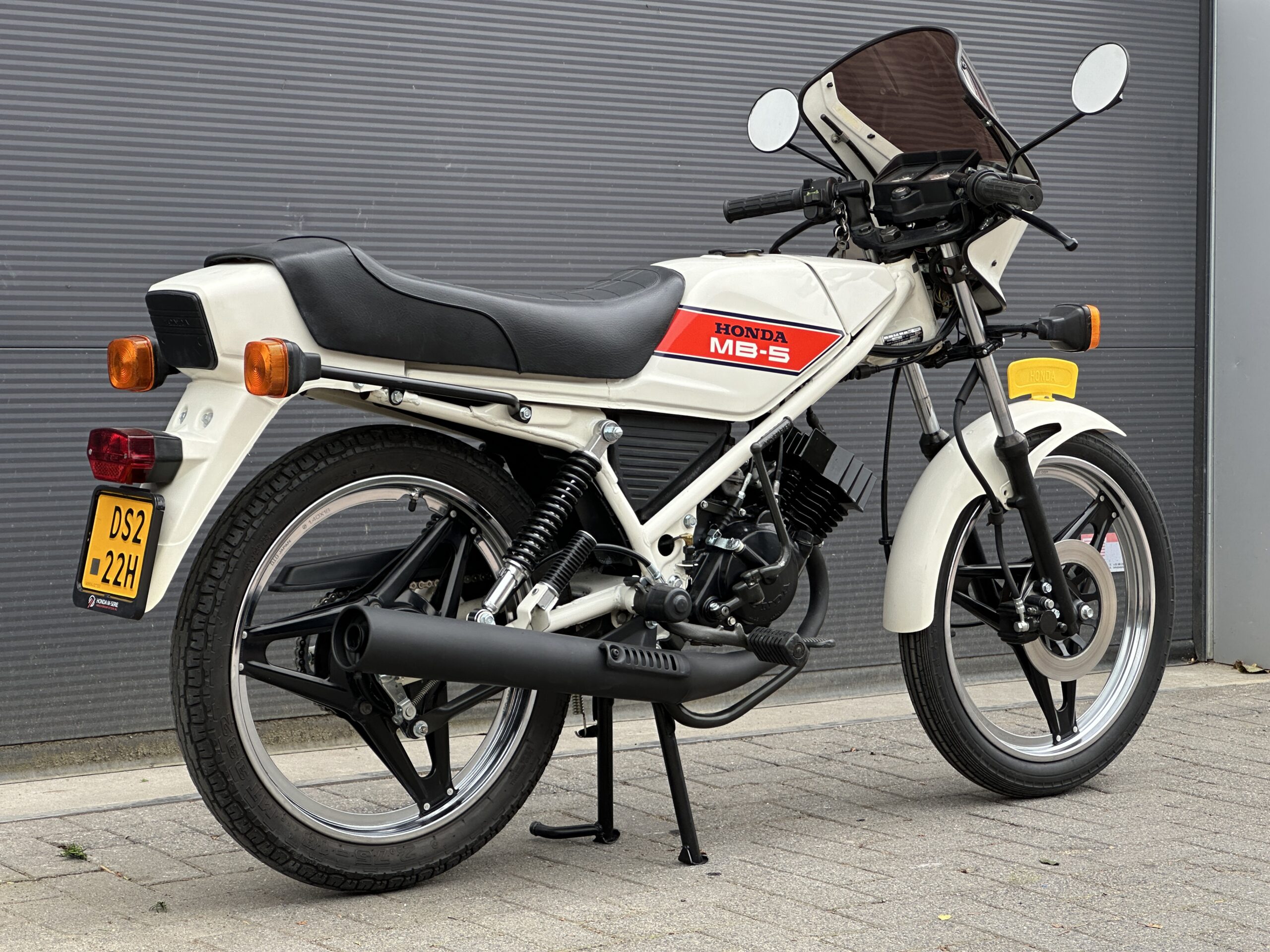 Hierbij bieden wij aan deze super mooie, originele, niet gerestaureerde Honda MB50P. Het betreft hier een NL bromfiets met het trapstel / de pedalen, zoals dit verplicht was in Nederland t/m 1984. De MB heeft origineel slechts 16472 km en verkeerd in uitmuntende staat. naar originele velgen. Het framenummer 5023621 en het bloknummer 5023720 komen heel dicht bij elkaar. Wij hebben de MB volledig in orde gemaakt, helemaal gepoetst, hier en daar wat boutjes en moertjes vervangen maar daar blijft het dan ook bij. Echt een bijzonder exemplaar! Zoek je een hele mooie MB, om heerlijk mee te toeren of als verzamelstuk? Kom dan dit exemplaar eens bekijken!