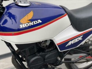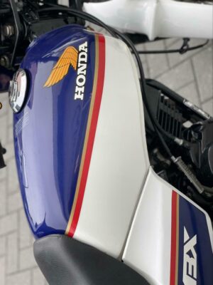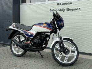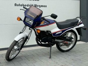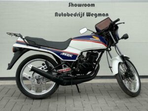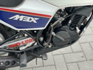 Zeer nette Honda MBX50 Rothmans. De MBX is in zeer mooie originele staat en heeft slechts 7000 km. Er zit een heel klein deukje in de tank. Het kuipje is opnieuw gespoten.