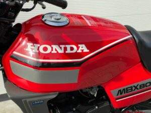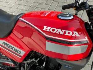 Wat een beauty, deze Honda MBX, werkelijk in bijna smetteloze staat, voor een MBX van bijna 40 jaar oud! Alles klopt aan deze MBX, niet verprutst, niet gespoten, geen deuken in de tank, alles is gaaf en mooi!
