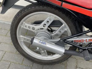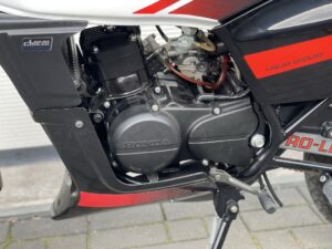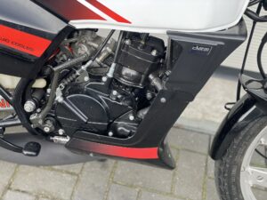 56MM Big bore met Autisa zuiger. Speciaal op maat gemaakte kop, volledige inlaat met originele 21 MM carburateur van een Honda NS1, 6 versnellingsbak van een Honda MTX OT met een lange eerste versnelling en een afgedraaid vliegwiel.