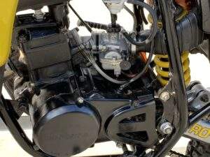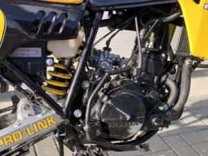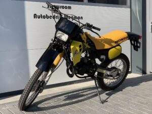 Mooie MTX50R. Het meeste aan de bromfiets is origineel en is compleet gerestaureerd. Het voorwiel is van ‘88 dus een keer vervangen. Brommer heeft de originele cilinder, spruitstuk en carburateur. De achterdemper is van een 80. Het spatbord, de spoiler en de zij kappen zijn origineel. De brommer is voorzien van een NL kenteken. FDS-25-X.