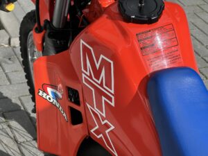 De MTX heeft een teller met 0 km, een splinternieuwe tank, al de plastic delen zijn nieuw en origineel, de wielen zij origineel Araya, de achterband is nieuw en origineel, enz.
