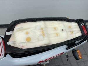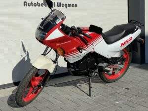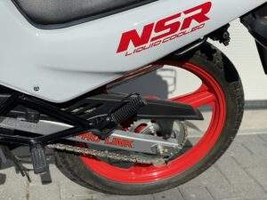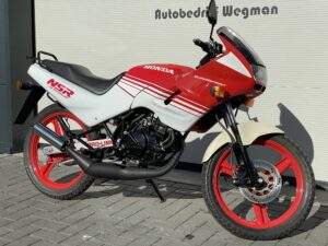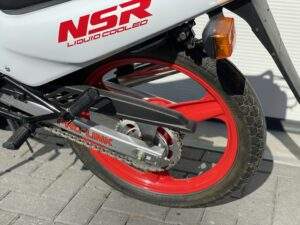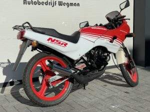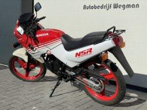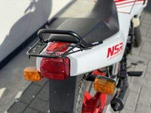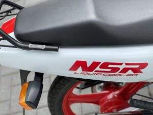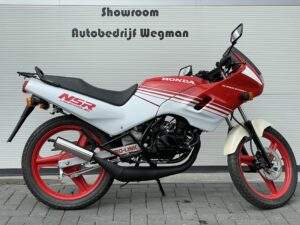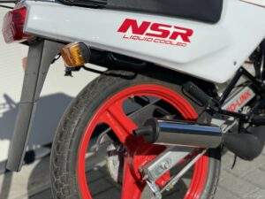 Een splinternieuwe Honda NSR50 AC08. Deze NSR heeft nog nooit gereden. Er heeft geen brandstof in de tank gezeten en geen koelvloeistof in het systeem.