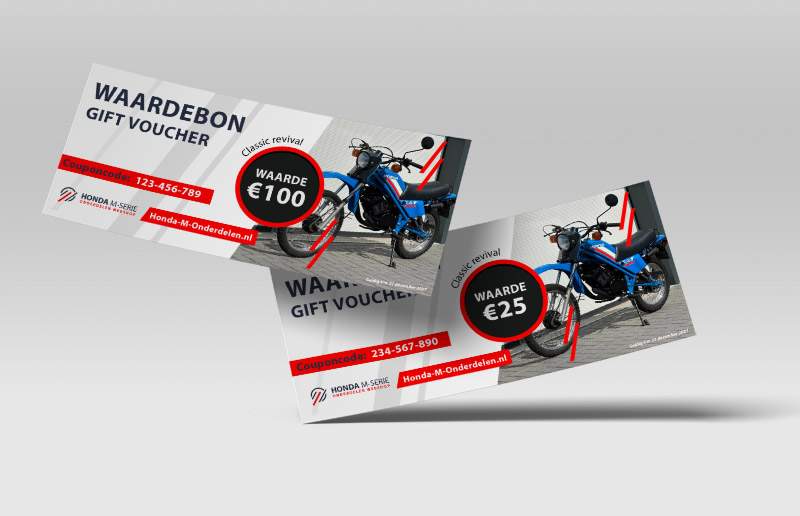 Na aankoop ontvang je de digitale cadeaubon per e-mail, voorzien van een unieke code die eenvoudig te gebruiken is tijdens het afrekenen in onze webshop. Het gekozen bedrag wordt automatisch verrekend, waardoor de ontvanger moeiteloos precies vindt wat nodig is voor onderhoud, reparatie of personalisatie van de Honda.
