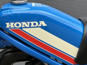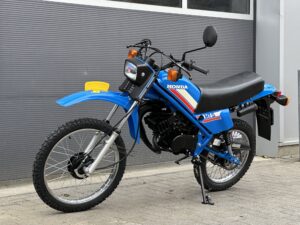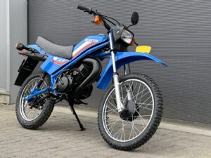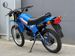 Deze MT5 is toch ook wel een heel mooi exemplaar! één van de aller eerste MT’s (1979) Volledig opnieuw opgebouwd, in de mooie kleurstelling PB109. De MT is natuurlijk volledig gespoten maar al het kunststof en het zadel is origineel! Echt een hele leuke MT in nieuwstaat!