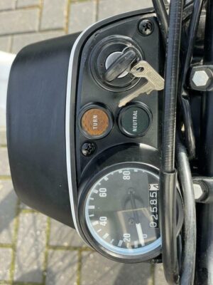 Hierbij bieden wij aan deze zeer mooie in originele staat verkerende Honda MT8. Het kapwerk, de wielen, alles is origineel aan deze MT. De achterbrug hebben we gespoten. Hier zat wat roest aan van het lange staan. maar ook de brug is werkelijk weer in topstaat en origineel qua kleur. Naast de achterbrug hebben we de MT helemaal technisch klaar gemaakt. De MT start, rijdt en schakelt als nieuw. Dit kan ook bijna niet anders met 2500 km. De wielen zijn origineel en zeer mooi, alsmede de banden. (Origineel Bridgestone)
