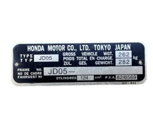 Plaatje Framenummer / typeplaatje Honda MBX80 HC04