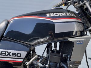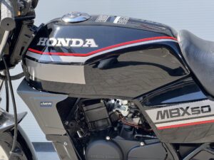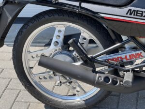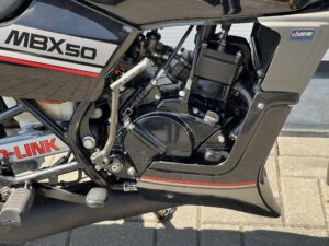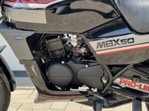 Deze 50 LC uitvoeringen van de MBX zijn zeer snel en voorzien van een motorblok met een snelle 50, 6 versnellingen en een 16MM Keihin carburateur. Deze uitvoeringen rijden zonder begrenzing op het gemak rond de 90 km. Ph. Deze MBX is origineel één Belgische uitvoering.