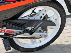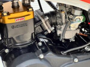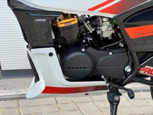 Volledig nieuw gebouwd blok met slag 44 en versnellingsbak van een MTX125. Getunede Athena cilinder en VHM op maat kop, DPR op maat uitlaat, Mikuni TMX27 carburateur, HPI2Ten ontsteking en een grote op maat gemaakte aluminum radiateur.