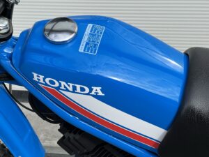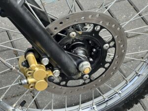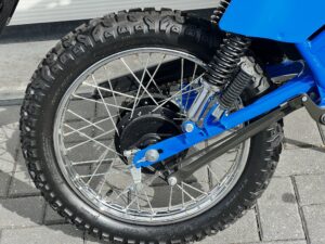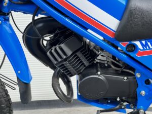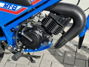 De setup van de MT is volledig origineel met de originele 18MM Keihin. Natuurlijk is hier ook een heel snel exemplaar van te maken met een 110 of 125CC! Helemaal omdat deze machine de perfecte remmen heeft.