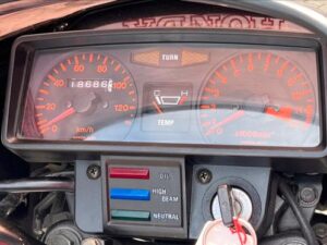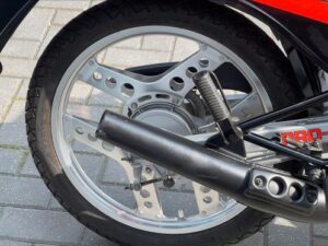 Mankeert deze topper dan echt niets? Ja, helaas wel. Links een kleine oneffenheid op de tank en rechts idem. Rechts is uit te deuken zonder spuiten maar dat is dan ook écht het enige. Zoek je een hele toffe en snelle brommer incl. bromfiets kenteken?
