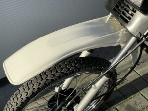 De MT is voorzien van een nieuwe achterband, en de stickers op de zijkappen zijn vervangen. Het plastic is origineel en het voorspatbord is nog in nieuwstaat.