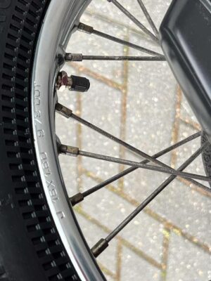 Er is niets gespoten en of bijgewerkt aan deze MT, dat is hier en daar ook heus wel te zien maar hij is 44 jaar oud! En dan in deze staat! Kijk die velgen, hoe mooi wil je ze hebben, beide kloppende DOT codes, van 1979 en het chroom? Het lijkt wel nieuw! Wij hebben alleen een stel nieuwe banden gemonteerd, die waren echt slecht.